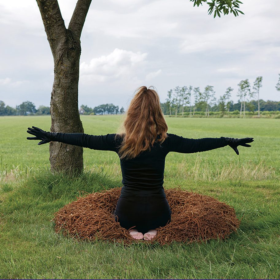Still uit de publiekloze performance als fabeldier (half mens, half vogel) in een nest gebouwd uit de mannelijke Tamme kastanje katjes, met een bedwelmende sperma-achtige geur (van veroorzaakt door de stof spermine). Een Tengu (Japans fabeldier) is vaak een kraai-achtige verschijning.